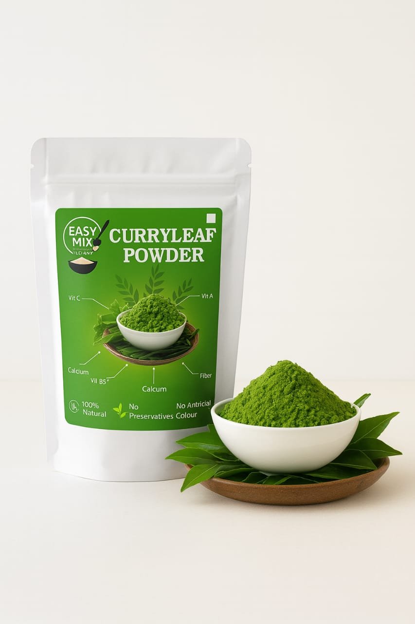 Unlock the power of nature with our carefully crafted Curry Leaf Powder. Made entirely from fresh, sun-dried curry leaves, this vibrant green powder is packed with essential nutrients that support both hair health and digestive wellness. Whether you’re looking to enhance your daily meals or incorporate a natural remedy into your wellness routine, this product is a versatile and potent solution.